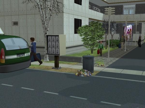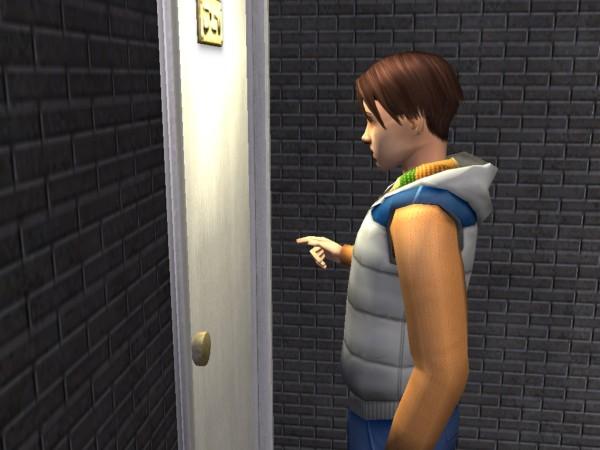 Welcher Idiot hat den Abfalleimer vor das Telefon gestellt? Gerrit kommt nicht dran. (Das ging doch locker in Sims 1)