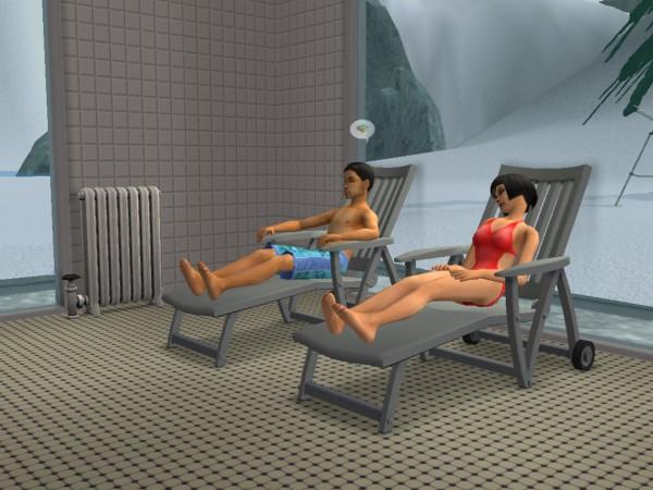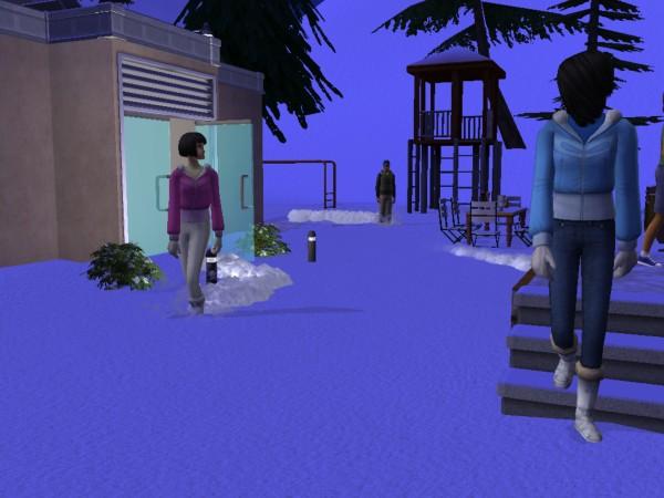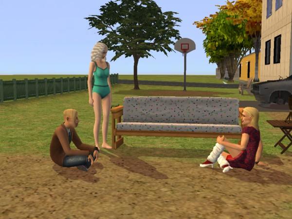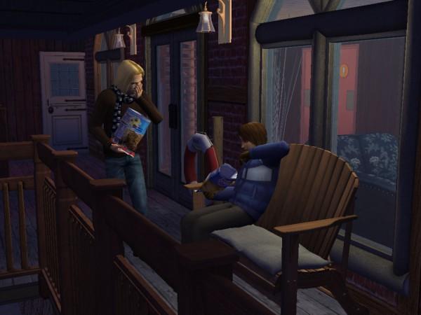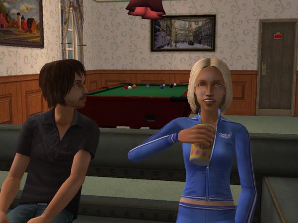 Selbst in diesem entlegenen Winkel der Simswelt findet Bettina eine Möglichkeit, ihrer Spiele-Leidenschaft nachzugehen. Die "Hobby-Begeisterung" steigt aber auch bei ihr nicht. Guido hängt derweil mit der süßen Carmen ab.
